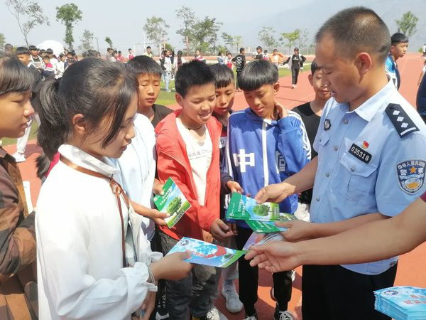 宣讲结束后,干警们为同学派发禁毒手册时,同学们积极与干警交流,谈心得、说体会,并表示“在以后的学习生活中一定严格要求自己,绝不吸食毒品……”“你们今天学习了禁毒知识、学习了英模精神,以后要有禁毒英雄的担当精神,在做好自身禁毒工作的同时,更要争担禁毒小卫士,回家后要把学到的禁毒知识和家人讲、和邻居讲、和朋友讲,与我们一起努力,筑起一道禁毒屏障……”红河县人民检察院未检干警张思思对同学们说到。