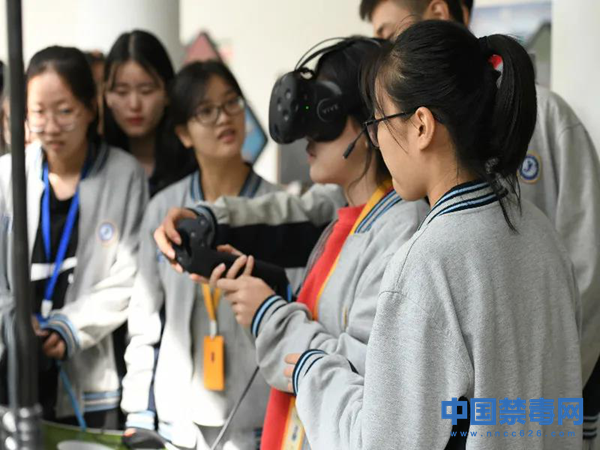 图为学生通过VR体验机了解禁毒相关知识。中国禁毒网发