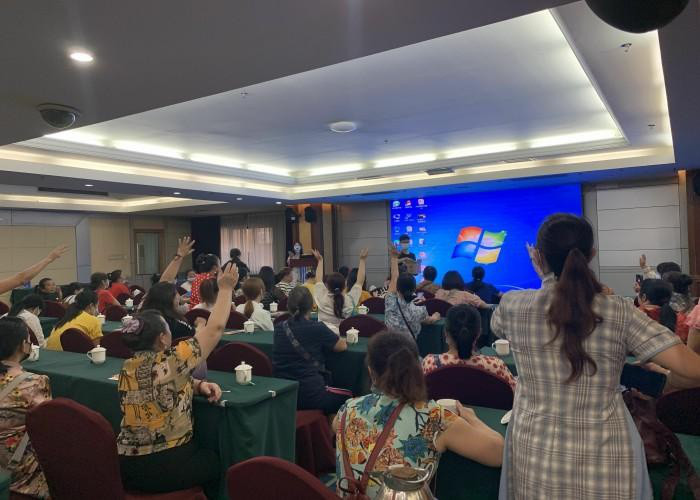 6月23日,南宁市疾病预防控制中心在桃源饭店举办2021年高危人群积极分子骨干技术培训班。通过高危人群同伴教育员以结对帮扶的模式吸引前来参与禁毒防艾知识培训活动的高危场所姐妹共60余人。