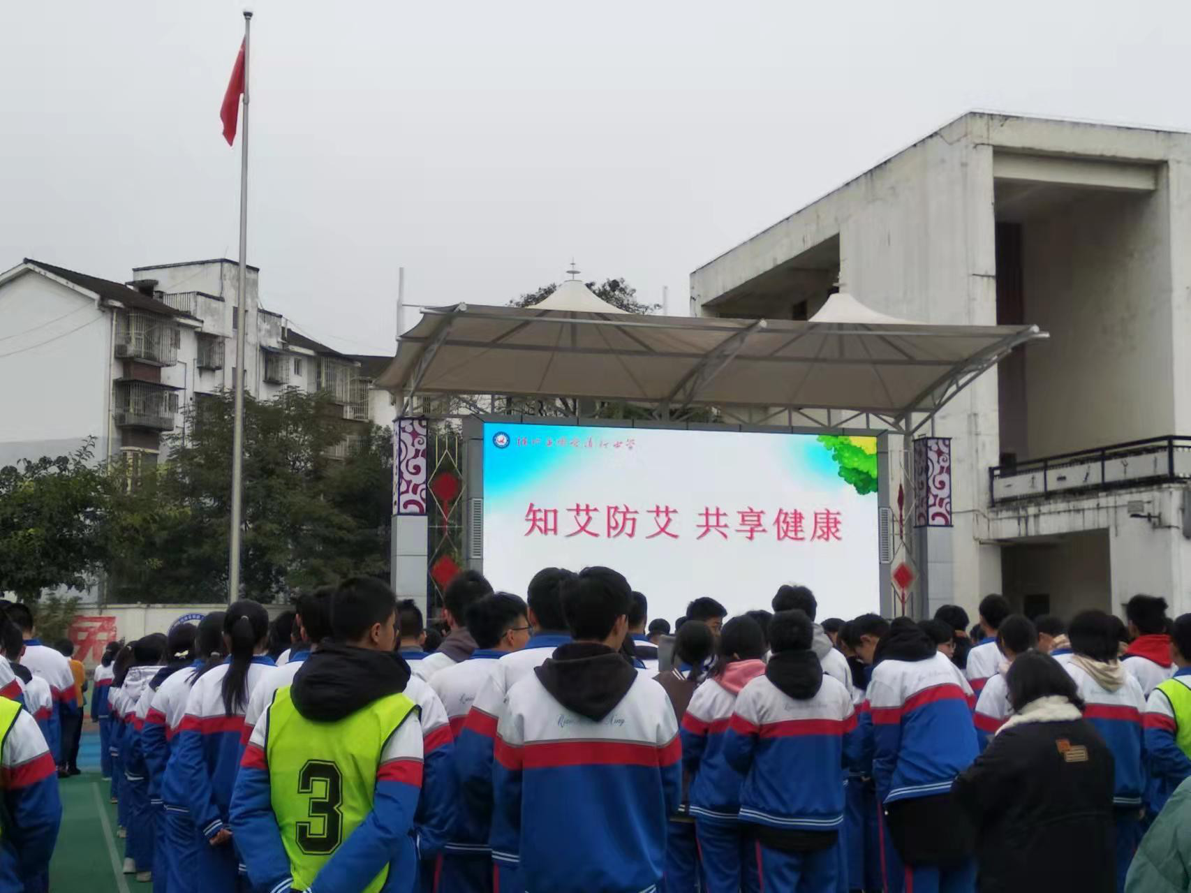 在第32个“世界艾滋病日”即将到来之际,为进一步普及师生预防艾滋病知识,引导师生正确认识艾滋病,切实推进学校艾滋病防控宣传工作,11月22日升旗仪式,绵竹市侨爱道行中学在全校开展了2021年“世界艾滋病日”宣传主题活动。