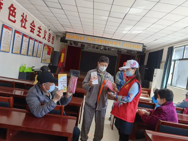 西贯市村妇联积极响应阳坊镇妇联“防治艾滋病进村庄”宣传教育活动,在村委会礼堂组织妇女群众参加“防治艾滋病”讲座。