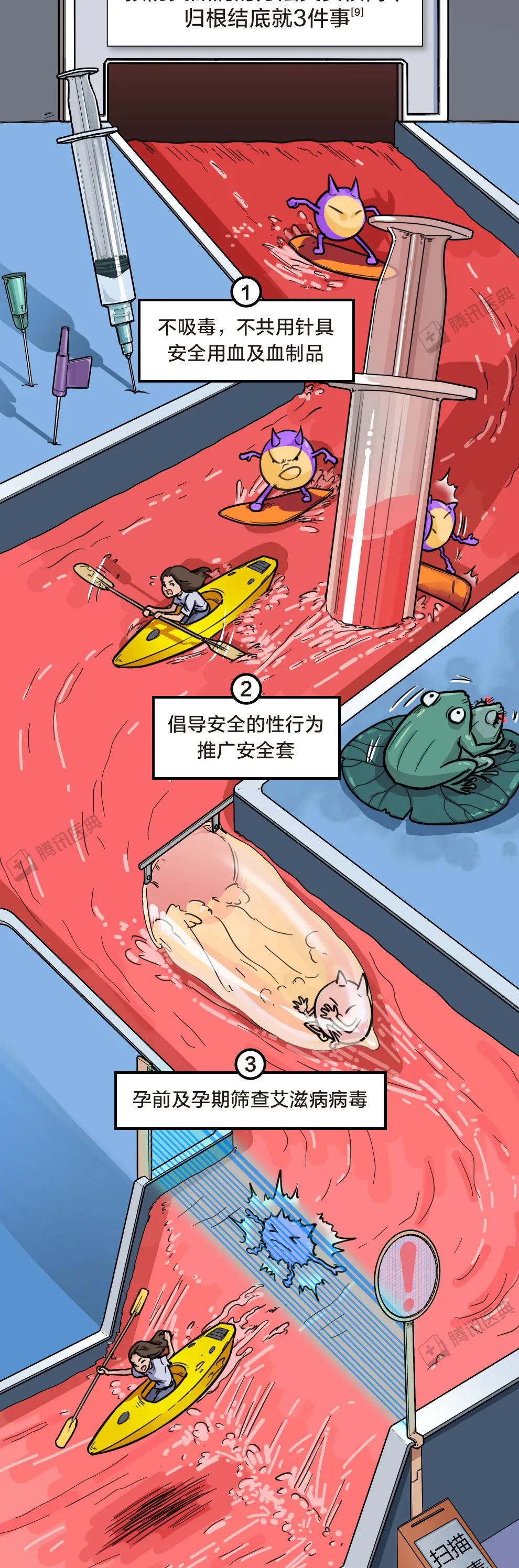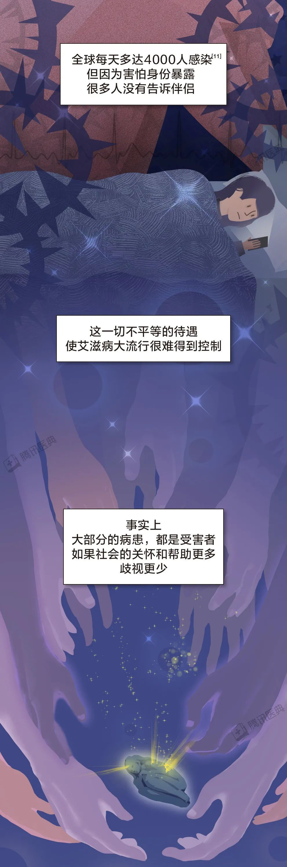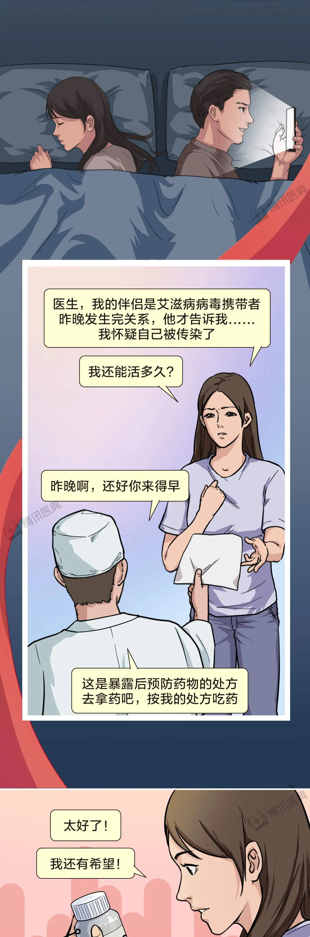 所以希望大家可以用理智的目光去看待这类人,因为他们在患病的同时,不仅承受着生理性的折磨,还同时承受着别人异样的目光,希望大家可以放下歧视的心理,用平常心去看待他们,下面让我们用这组漫画一起了解一下,什么是艾滋病,如果患有艾滋病,该如何应对。