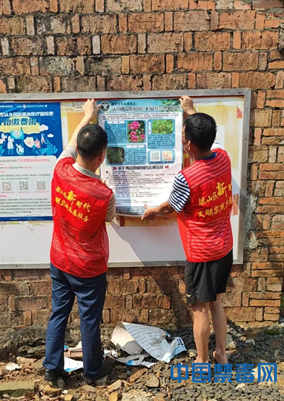 图为工作人员张贴禁种铲毒宣传海报。中国禁毒网发