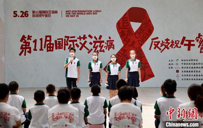 中新网太原5月26日电 (高雨晴 杨杰英)“天空有雨,伞下有你。”5月26日,第十一届国际艾滋病反歧视午餐日,各界人士以视频方式为国内唯一艾滋病患儿学校——山西临汾红丝带学校的学生献上祝福,共同倡导艾滋病反歧视,做孩子们成长路上的“撑伞人”。