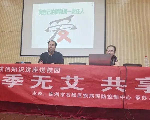 中国青爱工程湖南株洲市基地公益讲师团讲师、株洲市疾病预防控制中心性艾科主管医师李丰,围绕青春期性教育、艾滋病传播途径、预防知识、性侵等内容,生动讲解,有奖互动,让同学们拒绝“懵懂”,进一步了解青春期性健康与艾滋病防治知识。