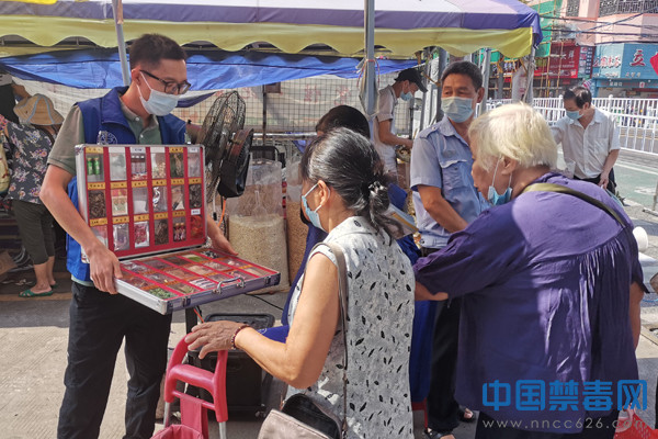 中国禁毒网讯 为增强群众的禁毒意识,做好全民禁毒预防教育工作,近日,广东省佛山市顺德区乐从镇禁毒办、佛山市顺德区公安局乐从派出所、顺德区禁毒协会乐从分会联合乐从镇启明星驿站,在乐从镇红棉市场开展禁毒宣传活动。