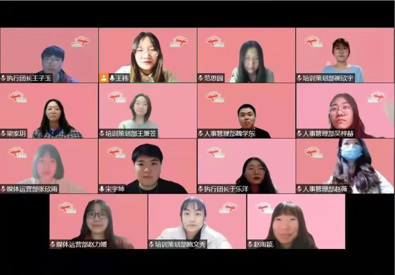 社团办宋宇坤老师、团长赵雨颖、团长梁家玥、执行团长王子玉、执行团长于乐洋及第五、六届部长团成员。