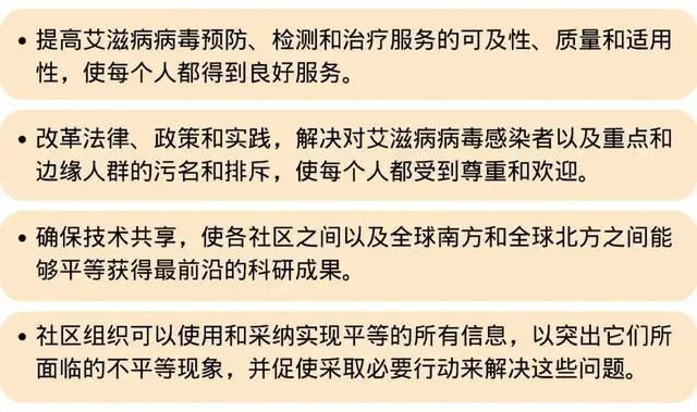 今年世界艾滋病日的全球主题为“Equalize”,中文直译是“实现平等”。这个口号意在呼吁所有人采取行动,采取循证有效的实际行动来解决不平等现象,终结艾滋病流行。可以采取的行动包括: