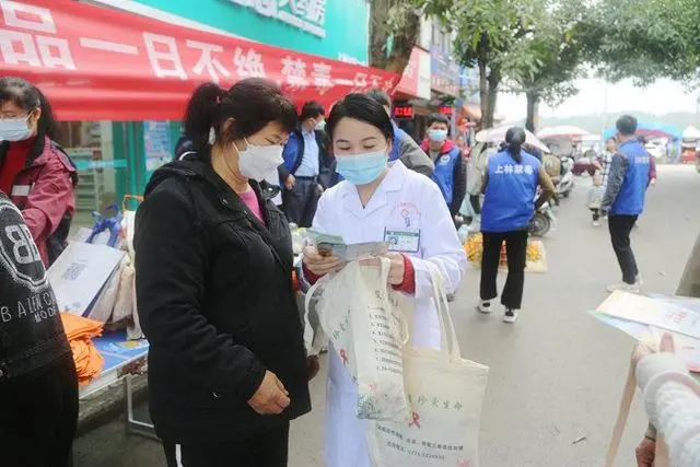 为确保宣传教育全覆盖,上林县防艾办将活动地点设在了人流量较大的集镇上,在每个乡镇的赶圩日当天通过发放防艾、禁毒等宣传资料、宣传礼品,向广大群众宣传普及艾滋病传播途径、感染艾滋病的危害及预防措施,进一步增强群众自我保护意识,自觉抵制不良行为习惯,当好自身健康 “第一责任人”。活动现场,禁毒、防艾志愿者们向群众展示和详细介绍了罂粟、大麻等不同种类的毒品,帮助群众识别毒品种类、了解吸食毒品的危害,引导广大群众洁身自爱,珍爱生命,远离毒品。
