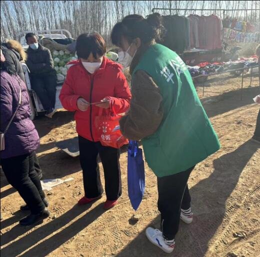 “大妈,您好,这个‘干货满满’的禁毒宣传手册,您拿回家仔细看看。”为帮助广大群众更好地了解毒品危害,提高辖区群众识毒、防毒、拒毒的意识和能力,平谷区大兴庄镇综治办、禁毒办充分利用农村赶集日人流量大的机会,禁毒宣传也来“赶大集”。活动中,禁毒志愿者向前来赶集的群众发放禁毒宣传资料,用通俗易懂的语言向大家介绍常见毒品的种类、毒品的危害、禁毒相关法律法规等知识,并提醒广大群众在日常生活中发现有涉毒违法犯罪行为的,要及时向公安机关报告。
