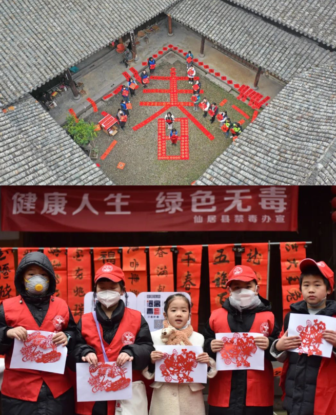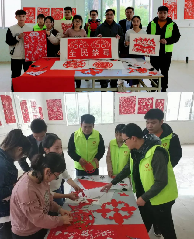 春节前后,浙江仙居、山东莱西、广东深圳、广西藤县等地禁毒部门与相关部门和社工联手,通过开展剪纸活动,庆新春宣禁毒。