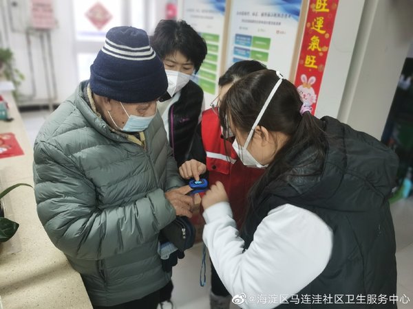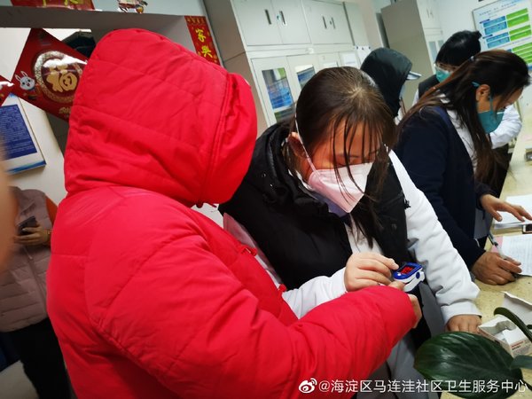 老年人特别是有基础疾病的老年人是新冠病毒感染的高危人群,如何保护身边的老年群体,成为大家普遍关注的重点。为做好重点人群服务保障工作,马连洼社区卫生服务中心图景嘉园家医团队为80岁以上高龄老人、独居老人、失独老人等重点人群发放了血氧仪。同时为社区放入两个“爱心公用血氧仪”方便社区居民关注健康,检测血氧饱和度。