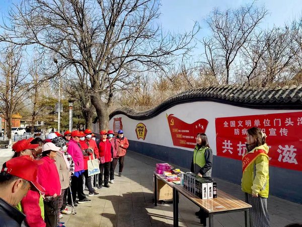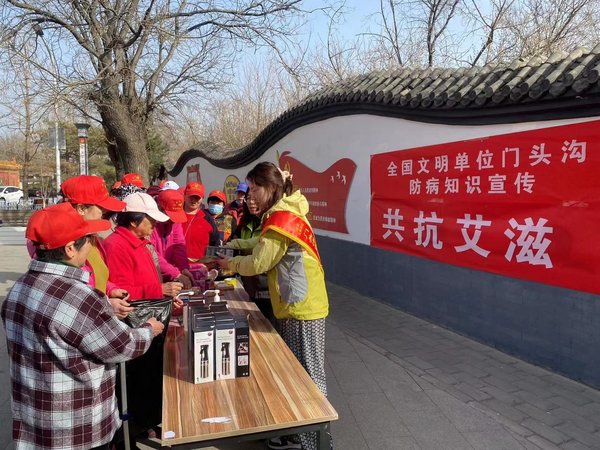 为了大力宣传传染病的防控工作,2023年3月10日上午,门头沟区疾控中心防病宣传志愿者走进琉璃渠村,进行了“共抗艾滋 共享健康”为主题的宣讲活动,这是继新冠疫情后疾控中心性病艾滋病控制科第一次在农村地区开展的防病宣传,群众参与热情高涨,恰逢村内开展卫生清扫活动,村内的卫生清扫志愿者、安全员等纷纷前来参加,他们认真听取疾控中心工作人员讲解传染病防控知识,有序领取了防病宣传材料,并表示会在今后的工作生活中更多的了解防病知识,鼓励家人朋友做好各种传染病,特别是性病艾滋病的预防,减少疾病的发生,做自己健康的第一责任人。