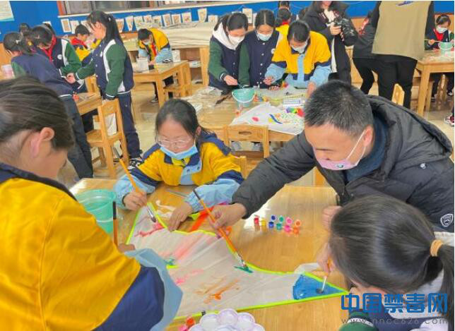 图为民警和学生一同制作禁毒主题风筝。中国禁毒网发