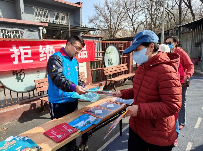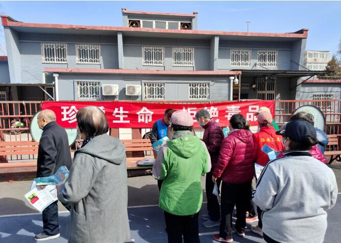 燕园街道在蔚秀园社区开展“珍爱生命,拒绝毒品”宣传活动,现场悬挂禁毒主题横幅,居委会工作人员向社区群众分发禁毒宣传资料,同时讲解《北京市禁毒条例》和毒品的种类与危害等知识,大力倡导“健康人生,绿色无毒”理念。社区居民积极响应,踊跃互动,营造了良好的社区禁毒氛围。