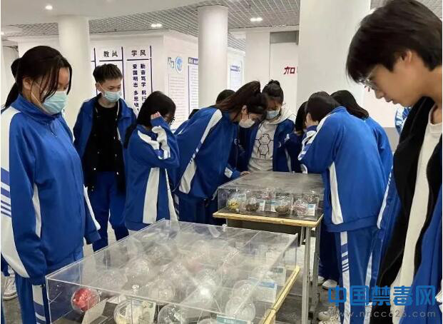 图为学生观察毒品仿真模型。中国禁毒网发