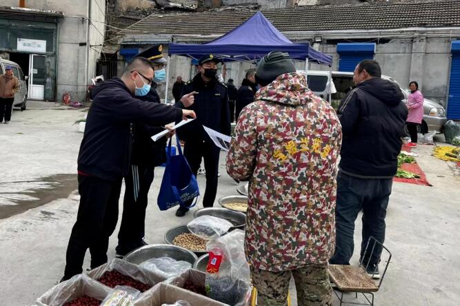 大台街道平安办联合市场监督管理所在辖区市场开展禁种铲毒宣传活动,工作人员向杂粮销售摊贩及购物群众发放禁种铲毒宣传资料,讲解毒品原植物形态特征及非法种植毒品原植物需承担的法律责任等知识,鼓励群众检举揭发涉毒线索,积极参与到禁毒斗争中来,进一步提高了广大群众参与禁种铲毒工作的自觉性和积极性。