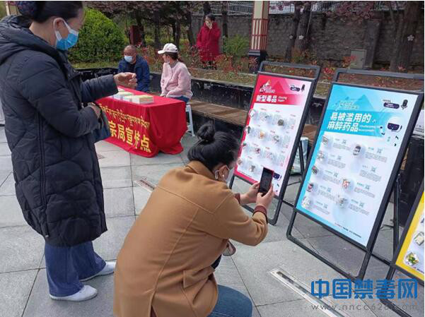 图为群众观看禁毒宣传展板。中国禁毒网发