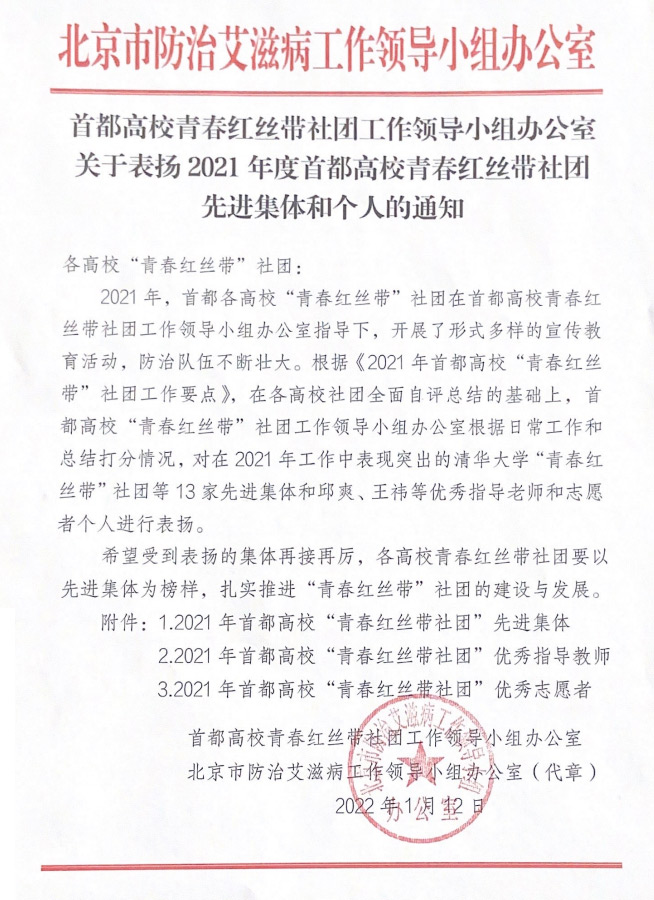 2021年度首都高校青春红丝带社团先进集体和个人