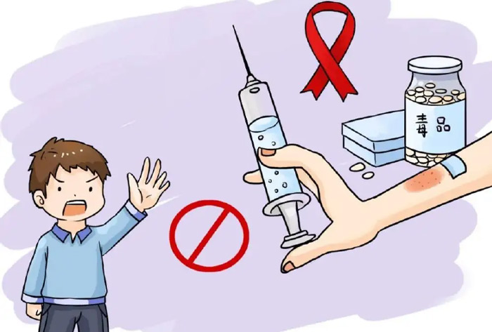 2. 严禁吸毒,不与他?共?注射器。
