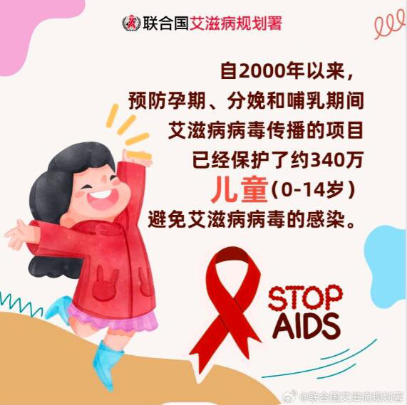 根据2022年的最新数据显示:自2000年以来,预防孕期、分娩和哺乳期间艾滋病病毒传播的项目已经保护了约340万儿童(0-14岁)避免艾滋病病毒的感染。