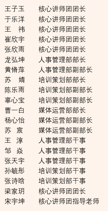 同学们一批批进入会议室,带着期待和稍许的忐忑,渴望在核心讲师团这个平台上展现自己的才华,贡献一份自己的力量。