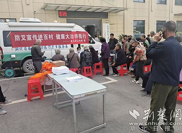“原来艾滋病可防可控,这样的科普听得懂、用得上!” 金山店镇锡山村居民陈爹爹拿着刚领取的宣传围裙感慨道。