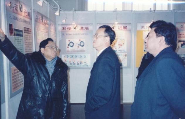 1998年,曾毅(左)在预防艾滋病展览现场