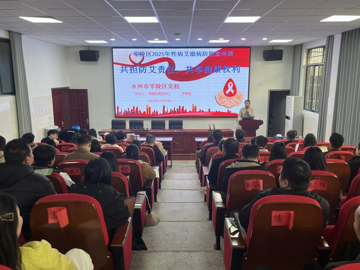 11月19日下午,零陵区卫健局、零陵区疾控中心联合在零陵区党校成功举办艾滋病防治主题宣传教育活动,百余名青年干部培训班学员参加。