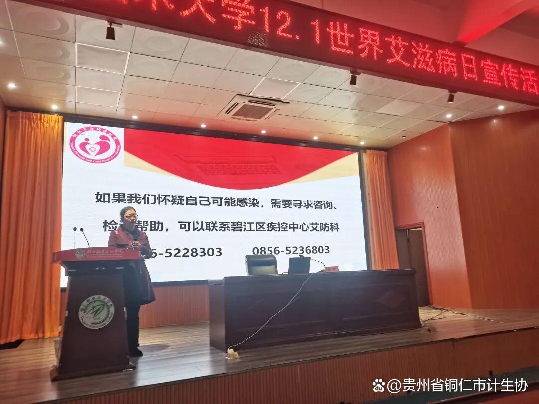 12月1日“世界艾滋病日”当天,铜仁市计生协会携手市卫生健康局、市疾控中心,走进铜仁职业技术大学开展了一场接地气的防艾专题讲座,既有干货满满的讲座,还有紧张有趣的知识竞答和视频教学,让大家在轻松氛围里学到了实用防护技能。
